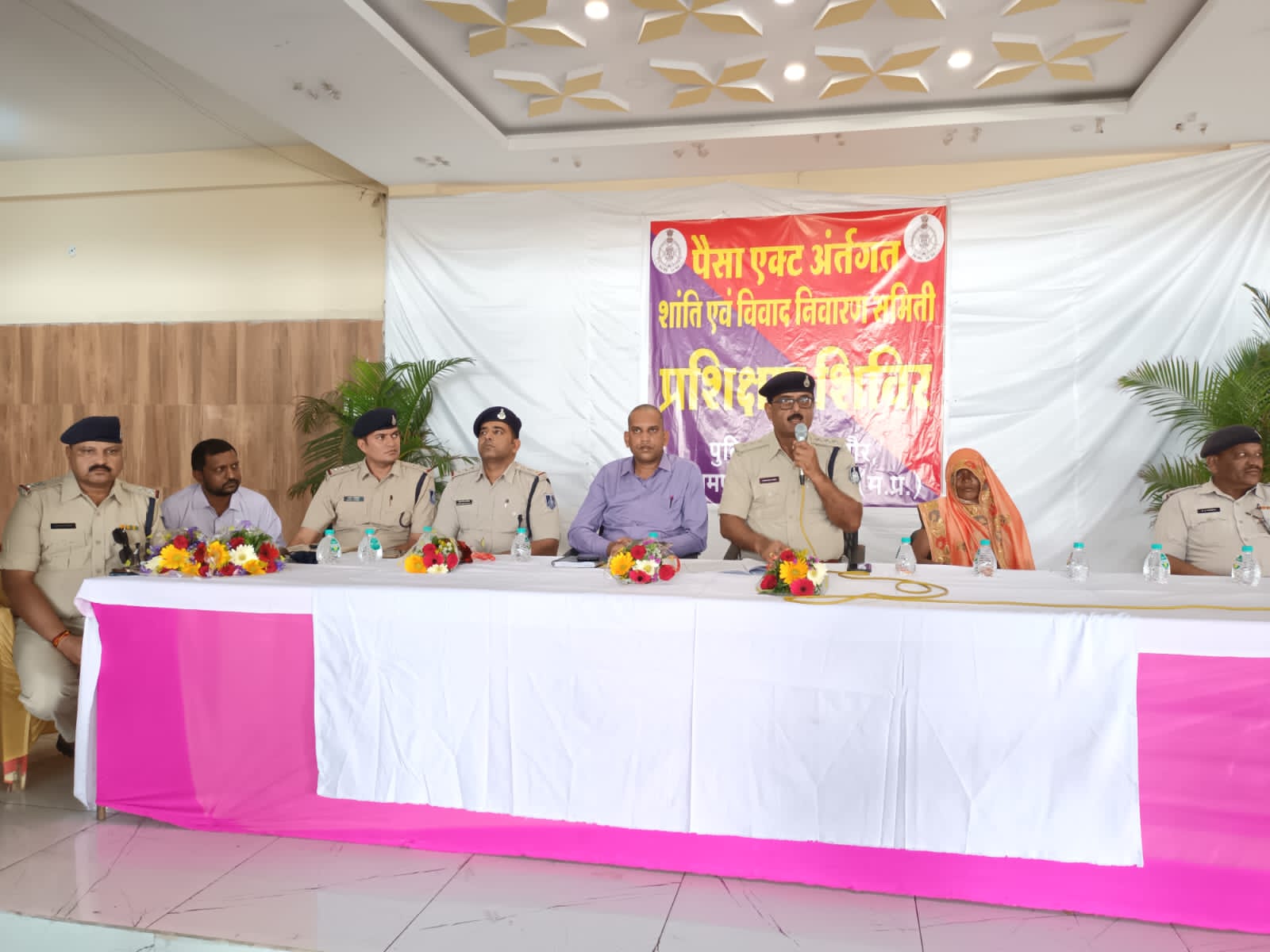 पुलिस अधीक्षक धार श्री मनोज कुमार सिंह के निर्देशानुसार जिले में अलग अलग दिनांको को अलग अलग थाना क्षेत्र में आयोजित करने हेतु निर्देशित किया गया था जिसके तारतम्य में आज दिनांक 30.04.2023 को पुलिस थाना सागौर क्षेत्र के अन्तर्गत गुरूकृपा गार्डन में थाना सागौर एवं थाना पीथमपुर के पैसा एक्ट के अन्तर्गत शांति विवाद निवारण समिती के सदस्यो का एक दिवसीय प्रशिक्षण कार्यक्रम आयोजित किया गया। उक्त कार्यक्रम में पुलिस थाना सागौर एवं पीथमपुर के ग्राम सभा के अन्तर्गत शांति विवाद निवारण समिती के सदस्य उपस्थित हुए जिन्हे पैसा एक्ट के अन्तर्गत शांति विवाद निवारण समिती के द्वारा किये जाने वाले कार्यो का प्रशिक्षण नगर पुलिस अधीक्षक पीथमपुर श्री तरूणेन्द्रसिंह बघेल एवं अजाक उपुअ सुश्री निलेश्वरी डावर एवं तहसीलदार पीथमपुर श्री सुरेश नागर के द्वारा पैसा एक्ट के बारे में विस्तृत प्रशिक्षण एवं जानकारी दी गई। प्रशिक्षण के दौरान उपस्थित सभी सदस्यो से कार्य के दौरान आने वाली समस्याए जानी एवं उनसे सुझाव प्राप्त किये । इस दौरान महिला अपराधो के संबंध में जानकारी अजाक उपुअ सुश्री निलेश्वरी डावर के द्वारा दी जाकर महिलाओ के अधिकारो के संबंध में विस्तृत जानकारी दी गई व सडक सुरक्षा सप्ताह के अन्तर्गत यातायात नियमो के संबध में हेतु आवश्यक समझाइश देकर नियमो के पालन हेतु पेम्प्लेट वितरित किये गये पश्चात सभी उपस्थित जनो को स्वलपाहार कराया गया। प्रशिक्षण के दौरान पीथमपुर अनुभाग के सभी शांति विवाद निवारण समितीयो के सदस्यो व पत्रकार बंधुओ के अतिरिक्त अनुभाग के थाना प्रभारी पीथमपुर श्री समीर पाटीदार, थाना प्रभारी सेक्टर 01 श्री लोकेश भदोरिया, श्री राजेन्द्रसिंह भदोरिया थाना प्रभारी सागौर, चौकी प्रभारी दिग्ठान श्री योगेन्द्रसिंह जादोन, चौकी प्रभारी घाटाबिल्लोद श्री प्रतीक शर्मा सहित थाने का बल उपस्थित रहा।