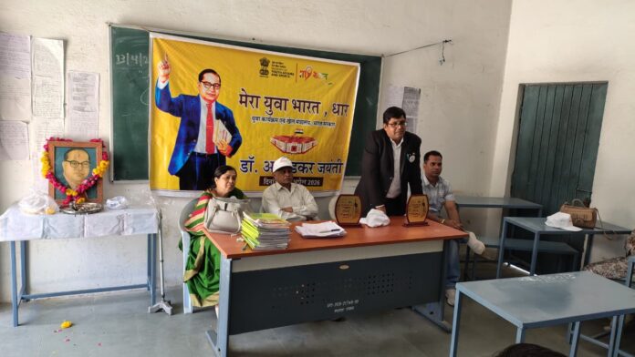युवा कार्यक्रम एवं खेल मंत्रालय भारत सरकार, मेरा युवा भारत धार, जिला युवा अधिकारी दीर्घा राजावत के मार्गदर्शन में सरदारपुर ब्लाक के श्रीराजेंद्र सुरी शासकीय महाविद्यालय राजगढ़ जिला धार में आयोजन किया गया, जिसमें अध्यक्षता महाविद्यालय प्राचार्य प्रो.श्री एस एल अलावा ने की एवं उनके द्वारा विद्यार्थियों को निरंतर महापुरुषों के जीवनी का अध्ययन करते रहने के लिए प्रेरित किया गया।मुख्य अतिथी सरदारपुर न्यायालय से अधिवक्ता श्री रविन्द्र कुमार सिन्दल रहे, जिन्होंने बाबासाहेब एवं संविधान पर प्रकाश डाला और उनके जीवन परिचय को पढ़ने का आह्वान किया। और कानून की जानकारी दी गई। , डॉ.श्री राकेश शिंदे ने बताया गए मार्ग जिसमें मौलिक अधिकार मूल कर्तव्य के लिए जागरूक रहे और हमेशा ऐसे महा पुरुषों जिन्होंने समाज हित के लिए कार्य किया है उनके बारे में अध्ययन करें और उन्हें ही अपना आदर्श बनाएं। इस अवसर पर युवाओं द्वारा संविधान की उद्देशिका को पढ़ा गया एवं उस पर हस्ताक्षर किए गए ।प्रो श्रीमती सरिता जैन,प्रो मोहतरमा शबाना कुरैशी, प्रो श्री जितेंद्र भगोरे, श्रीमती विजया दरबार, श्री अजय राठौर और समस्त स्टाफ उपस्थित रहा। संचालन राणा बख्तावर युवा मंडल अध्यक्ष श्री राहुल सिन्दल ने किया एवं आभार डॉ.श्री राकेश शिंदे ने किया।