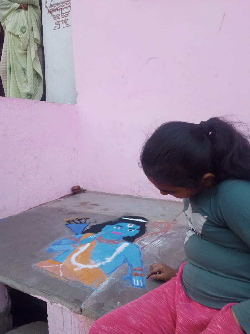 सरदारपुर। 22 जनवरी सनातनियों के गौरव का दिन रहा, अयोध्या में श्री रामलला प्राण प्रतिष्ठान की खुशी में सरदारपुर के घर घर रंगोली बनाई गई जिसमें नगर की 8 वर्षीय यशस्वी अंकुश तिवारी ने भगवान श्रीराम प्राण-प्रतिष्ठा की खुशी में पाने निवास आंगन में रंगोली बनाकर भगवान श्रीराम को उकेरा जिसे आसपास के रहवासियों ने सराहा है।