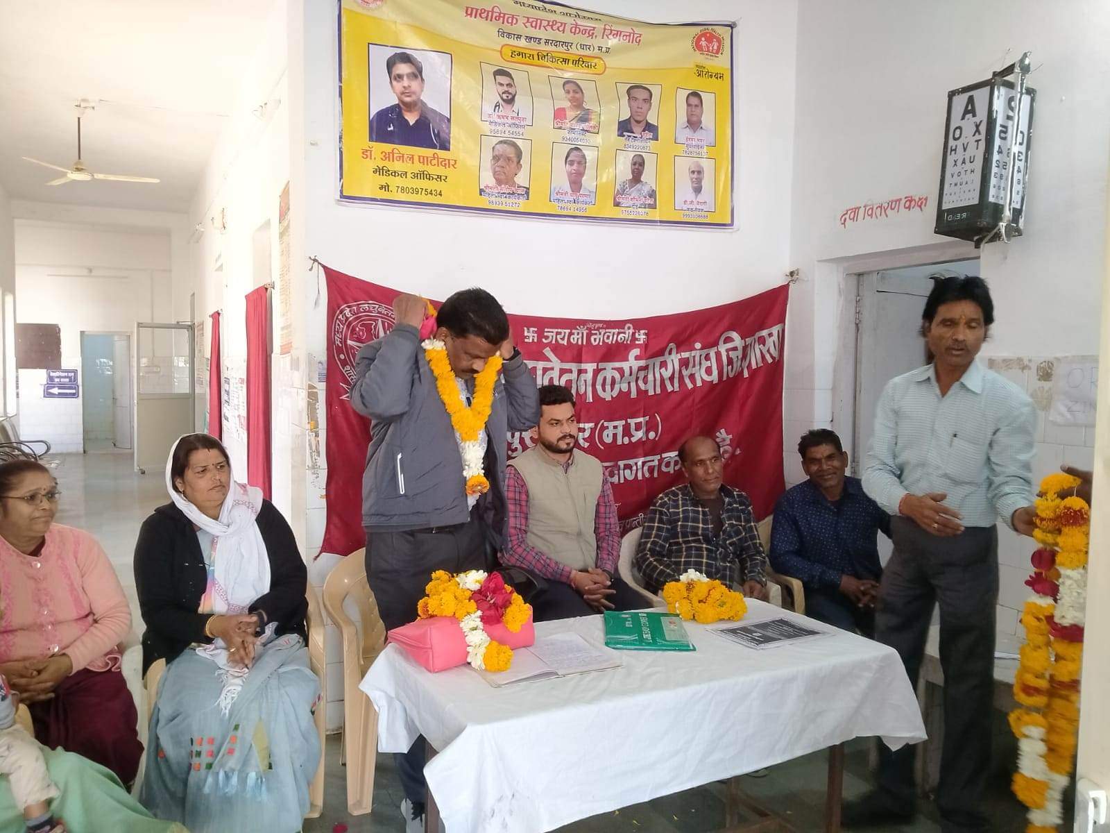 दिनांक 1/02/ 2023 को सरदारपुर तहसील के अंतर्गत ग्राम रिंगनोद में संपन्न हुई जिसमें मुख्य अतिथि के रूप में महिला प्रकोष्ठ की प्रदेश महामंत्री श्रीमती ममता ठाकुर एवं संयुक्त मोर्चे के तहसील अध्यक्ष श्री सुनिल संचेती तथा लघु वेतन के जिला अध्यक्ष श्री डी. डी. बैरागी व मेडिकल ऑफिसर डॉ श्री सतपुड़ा जी की अध्यक्षता में कार्यक्रम संपन्न हुआ जिसमें कार्यक्रम का संचालन करते हुए टप्पा तहसील दसई में पदस्थ प्रांतीय सचिव श्री भारत सिंह ठाकुर ने बताया कि प्रांतीय संरक्षक श्री निहाल सिंह जी जाट दिनांक 31/01/2023 को सेवानिवृत्त हो गए हैं, जिनकी कमी संगठन को हमेशा खलेगी, फिर भी वह घर रहकर संगठन को मार्गदर्शन देते रहेंगे तथा प्रांताध्यक्ष महोदय श्री महेंद्र शर्मा के आह्वान पर दिनांक 10/02 2023 को 22 सूत्रीय मांगों को लेकर ज्ञापन दिया जावेगा। उक्त कार्यक्रम में श्री गणेश कटारे श्री संतोष व्यास श्रीमती शारदा श्रीमती शोभनम व अन्य संगठन कार्यकर्ताओं ने उपस्थित होकर कार्यक्रम को सफल बनाया।